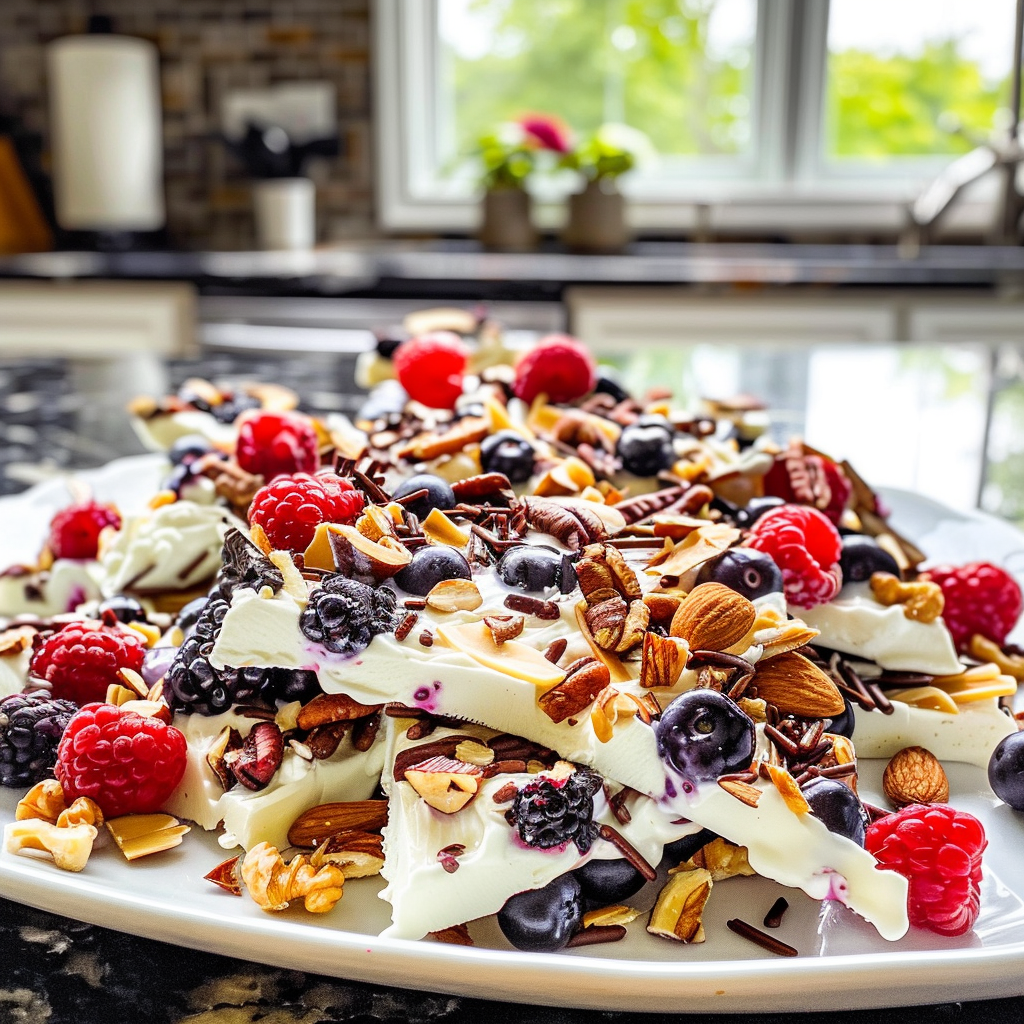 Delicious Frozen Yogurt Bark with Berries & Nuts Recipe