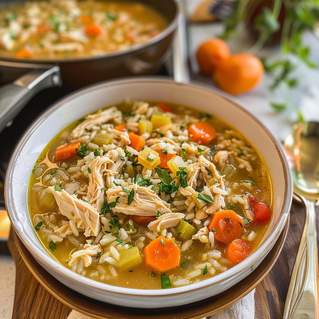 - This comforting crockpot chicken and rice soup marries tender chicken with creamy rice, creating a hug in a bowl