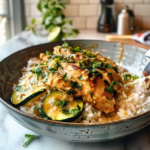 Serve It Up!: Fluff your rice with a fork and plate it alongside the vibrant chicken and zucchini mixture. Drizzle any leftover marinade over everything before serving.