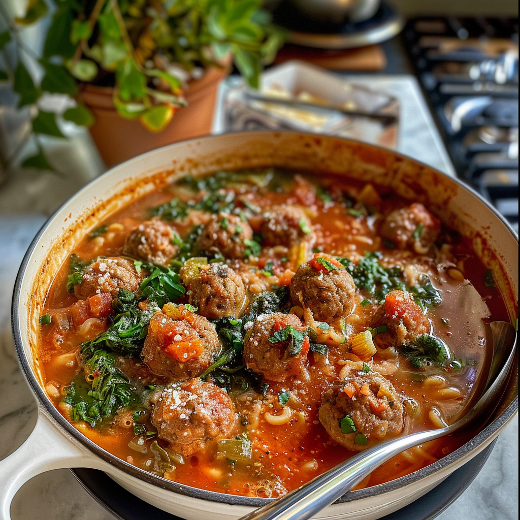 Italian Meatball Soup is a comforting dish that warms the soul with its rich flavors and hearty ingredients. With tender meatballs, aromatic herbs, and vibrant vegetables simmered in a savory broth, this soup evokes memories of family gatherings and cozy dinners. Easy to prepare and perfect for any occasion, it’s guaranteed to bring smiles to the table. Get ready to savor every delicious spoonful!