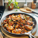 Balsamic Chicken and Mushrooms Skillet is a delightful, one-pan dish that effortlessly combines tender chicken breasts with earthy mushrooms in a rich balsamic glaze. This easy-to-make recipe is perfect for busy weeknights, delivering comfort and flavor that will impress your family or guests. Serve it over rice or pasta for a complete meal, and enjoy the symphony of sweet and savory tastes that make every bite memorable.