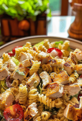 - This delightful Chicken Caesar Pasta Salad combines creamy dressing with tender chicken and crunchy romaine, creating a dish that’s both satisfying and refreshing